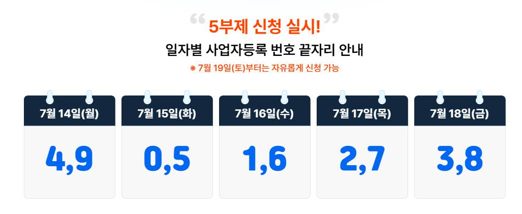 - 사업자등록번호 끝자리에 따른 신청일 확인