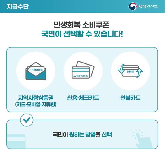 신청 시기: 2025년 7월 18일부터 순차 시작 신청 방법: 온라인(정부24, 복지로) 또는 주민센터 방문 지급 방식: 지역화폐, 선불카드, 또는 계좌 입금