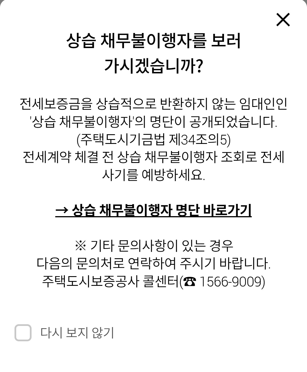 - ✅ 전세보증금 상습 채무불이행자 명단 확인하고 싶으면 팜업창 클릭