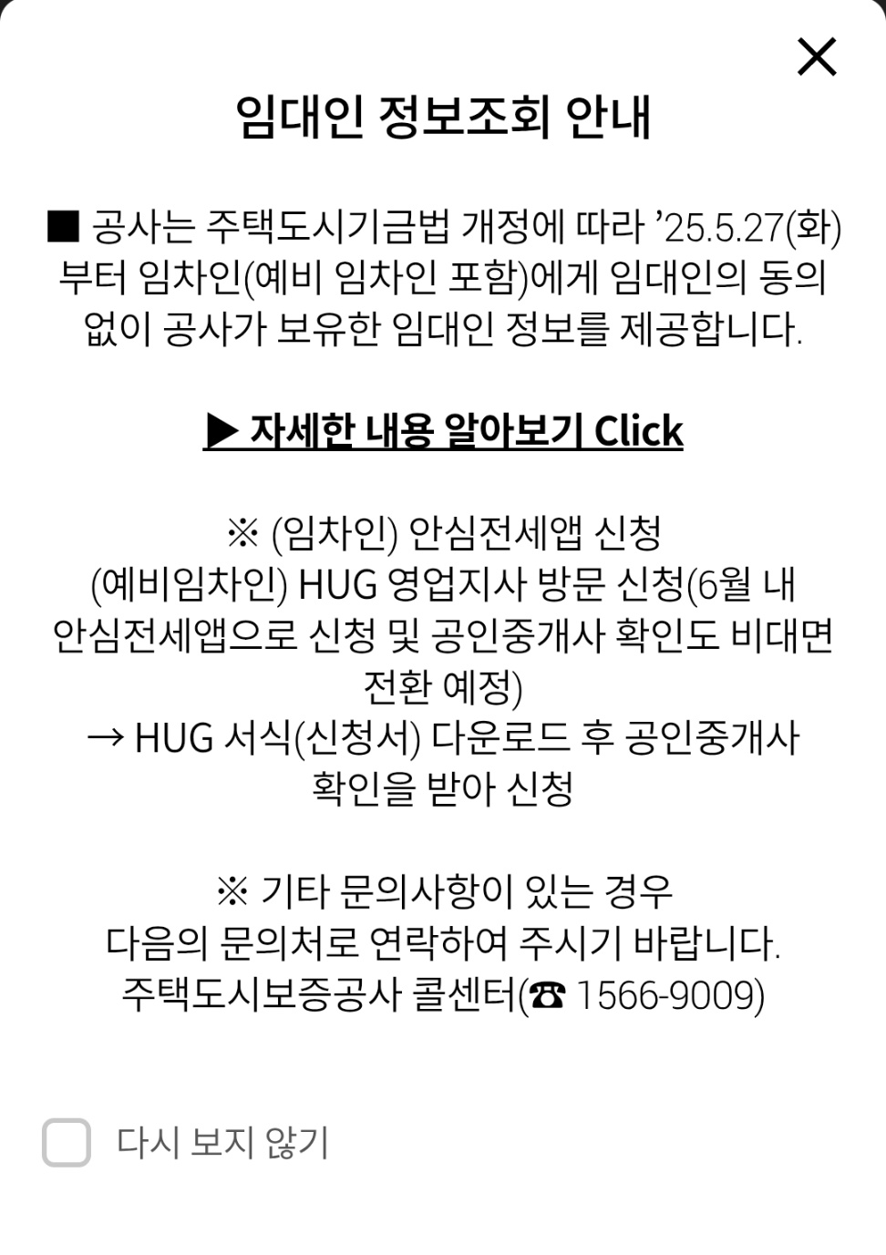 - ✅ 로그인시 팜업 창 임대인 정보 조회 안내에 자세한 내용 알아보기 클릭