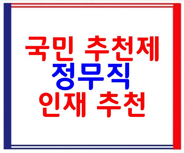 정부는 국민이 직접 공직 후보자, 정무직 인재, 공공기관장 등을 추천할 수 있도록 **국가인재DB 국민추천제**를 운영 중입니다. 지금 바로 참여해서, 우리 사회를 바꿀 전문가를 추천해보세요!