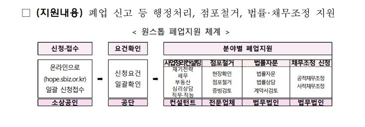 | 사업정리컨설팅, 법률상담 | 전액 무료 |