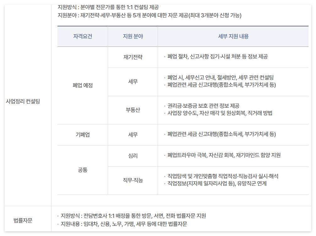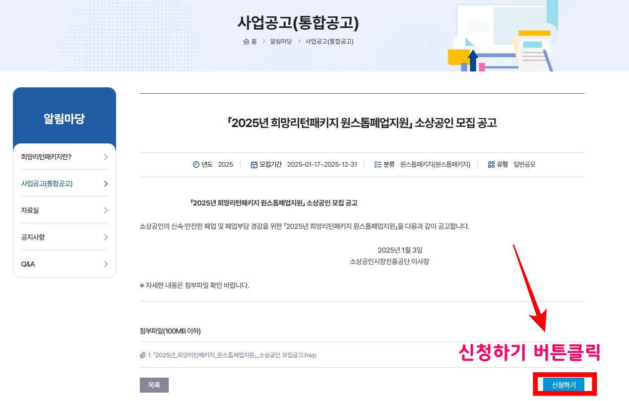 - 자세한 사항은 아래 " 2025년 희망리턴패키지 원스톱폐업지원 소상공인모집공고"