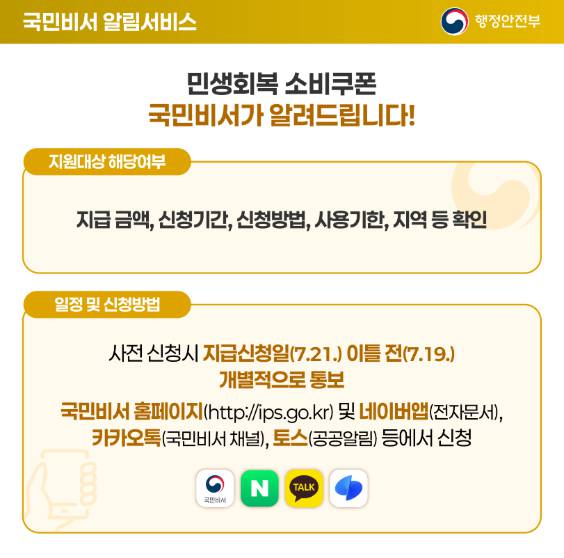 - 어떻게? "민생회복 소비쿠폰 알림서비스"를 사전 요청하면 됩니다.
