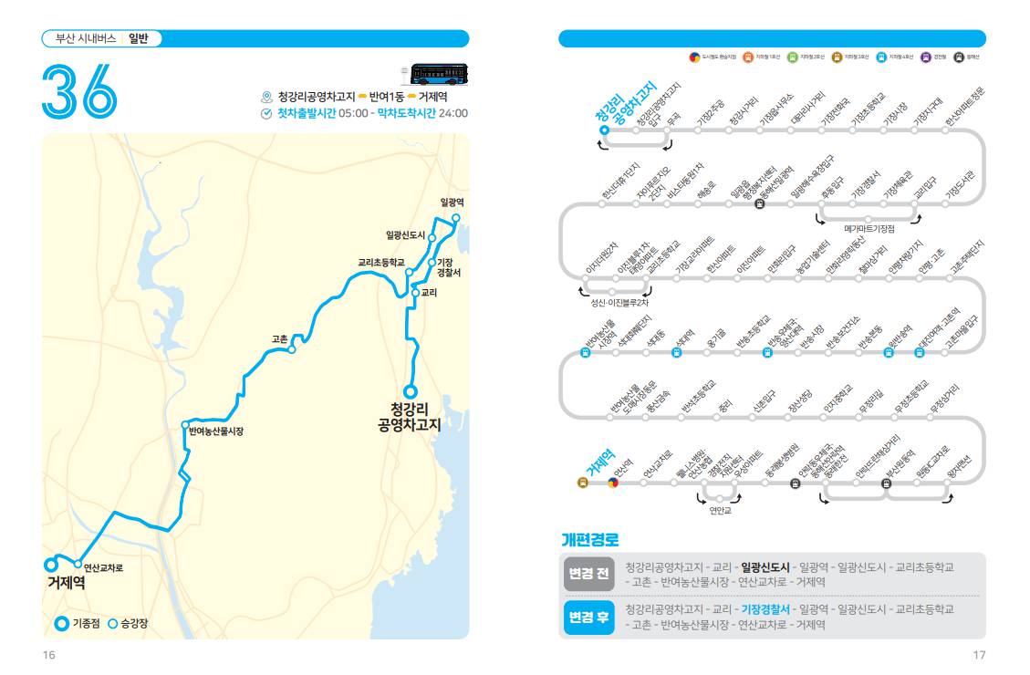 | 36번 | 경로 변경 | 기장경찰서 경유로 동선 직선화 |